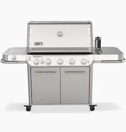 Step up to the Summit® grill, the top-of-the-line Weber gas grill reinvented with features that expand your outdoor cooking techniques and enable you to entertain at a higher level. Grill restaurant-quality steaks with the new top-down infrared broiler that directs blazing heat onto the top of food, producing an edge-to-edge caramelized crust that seals in flavor. Light up the stainless-steel smoker box to give your food a low-and-slow, smoky boost and break out of your routine with an integrated rotisserie. This grill is equipped with the WEBER CRAFTED cooking grates and frame kit that lets you transform your grill into a griddle, pizza oven, wok, and more with a variety of custom-fit grillware (sold separate). Bring the kitchen outside and create delicious food that makes every gathering memorable.